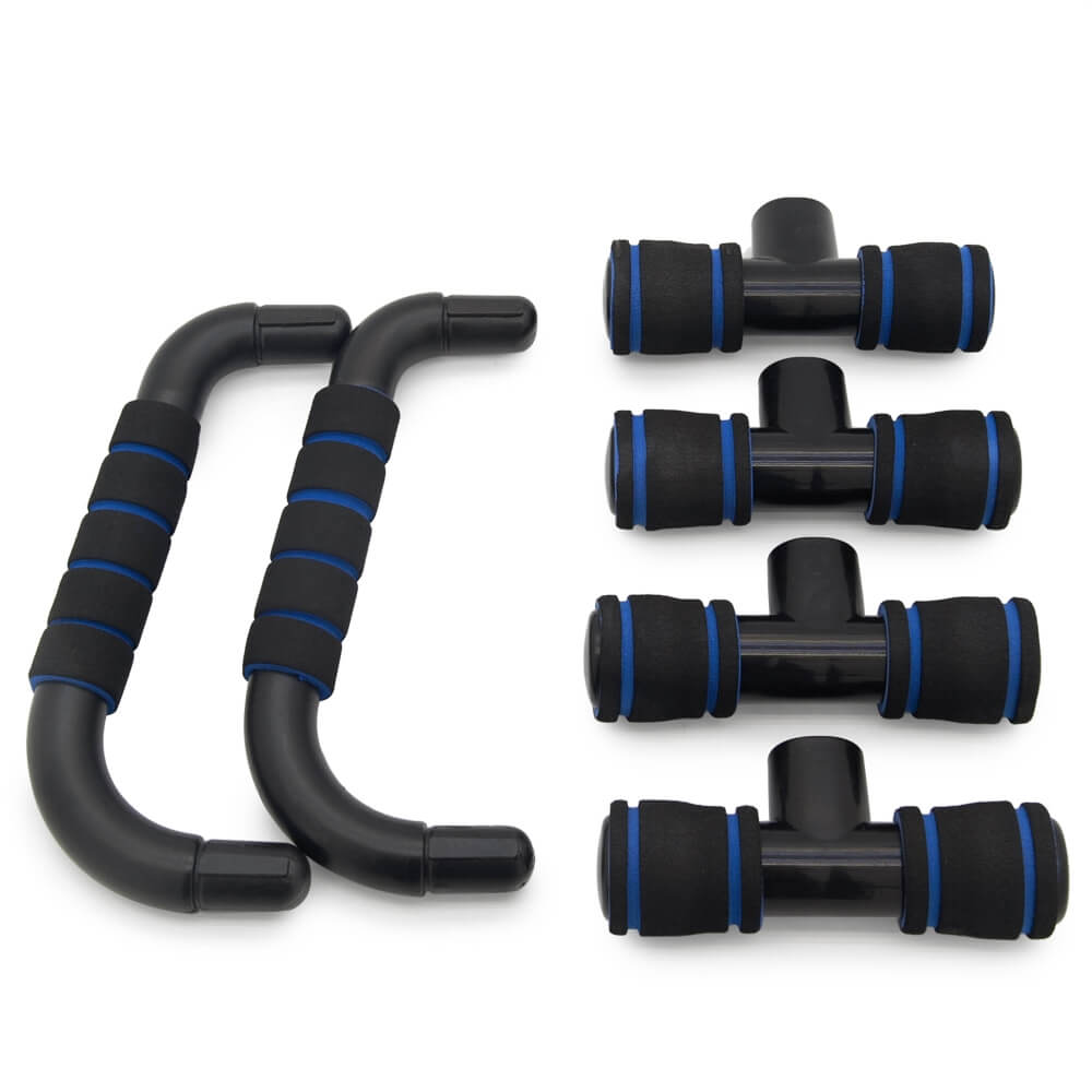 Упоры выполнены из высокопрочных полимерных материалов, окрашенных глянцевой черной эмалью. На упоры в месте соприкосновения с полом надеты противоскользящие пластиковые трубки. Рукоятки из плотного пенополиуретана. Упоры применяются во многих упражнениях с опорой рук в пол, например, отжиманием. Максимальная допустимая нагрузка на упоры не менее 100 кг.