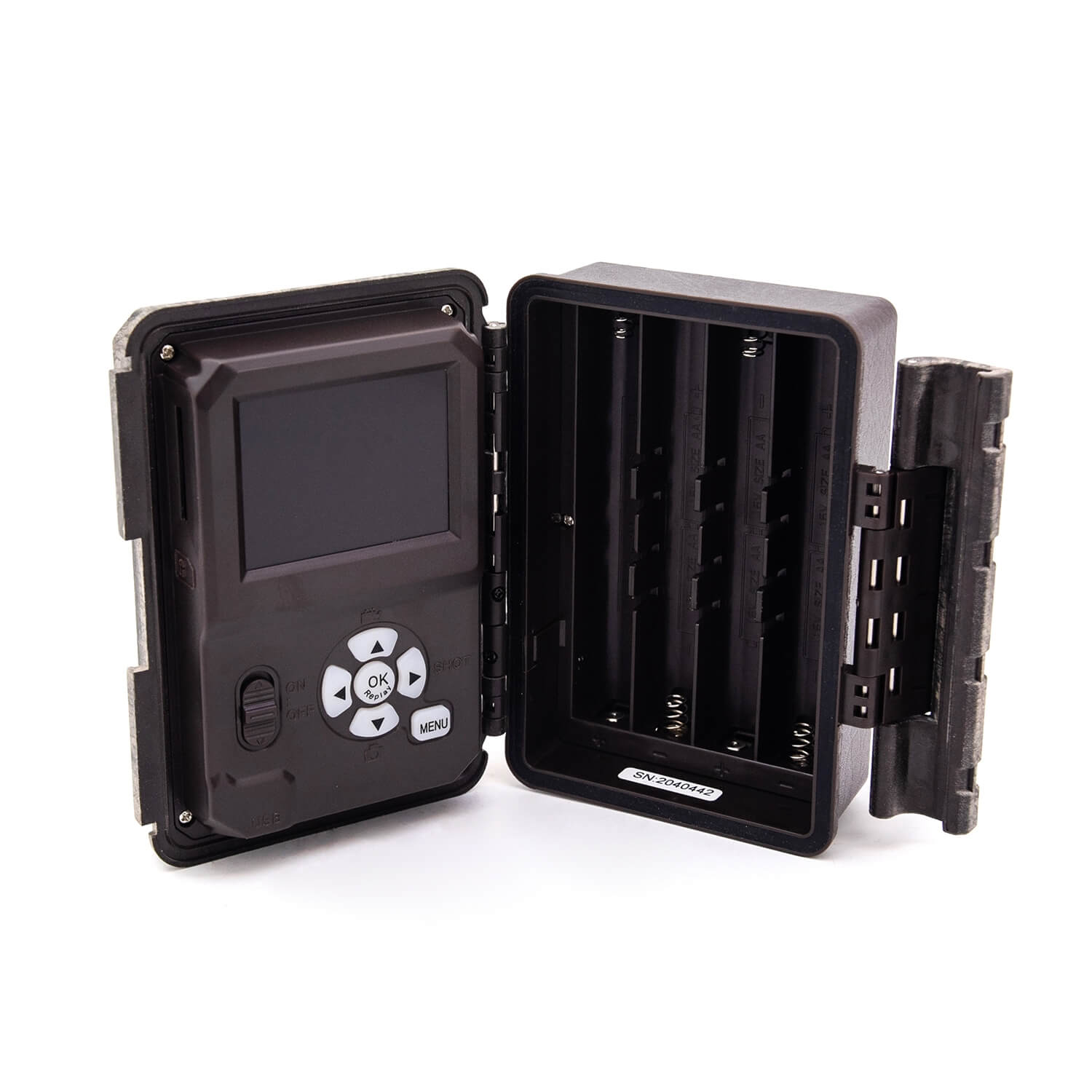 Фото- и видеорегистратор, который используется для наблюдения за животными в их естественной среде обитания. Объектив камеры с углом обзора 52 градуса по вертикали и 42 градуса по горизонтали способен снимать видео разрешением 1920х1080. Встроенный ЖК цветной монитор диагональю 2,4 дюйма облегчает программирование и настройку устройства. Прибор оборудован датчиком движения со временем срабатывания от 0.3 секунд и инфракрасными светодиодами для ночной съемки. Фотоловушка выполнена в пластиковом корпусе с классом защиты IP67. Для питания прибора используются 8 батареек формата АА.